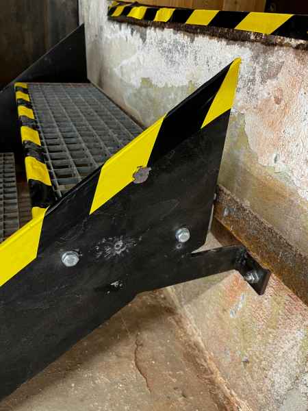 Weiter gehörte hier auch ein Beschusstest zur Abnahme des Schießstandes. Hier erfolgte neben dem Beschuss der Kugelfangmatten auch der Beschusstest der Decke und der verkleideten Betonpfeiler. Mit schwerem Herzen und einer Träne im Auge erfolgte auch der Beschuss der neuen Notausgangstreppe und der neuen feuerhemmenden Wandfolie.