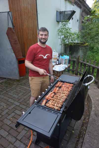 Für das leibliche Wohl sorgten ebenfalls die Mitglieder des Vorstands. So konnten sich die Kinder, Frauen und Männer selbstgesteckte Schaschliks und Würstchen vom Grill schmecken lassen. Dank der vielen fleißigen Helferlein mangelte es auch niemanden an schmackhaften Salaten, Tzatziki, Brot und Saucen.