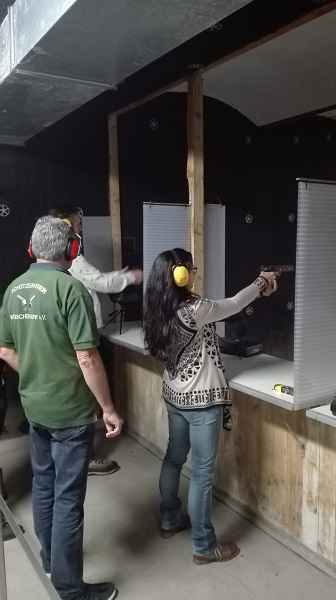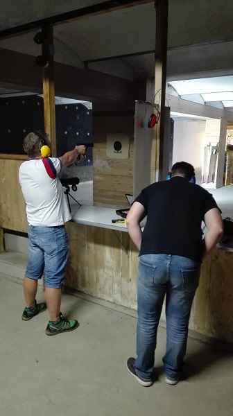 Man freute sich aber auch besonders über die Gäste, welche ursprünglich "nur mal gucken" wollten und dann den Weg auf den 25-Meter-Schießstand gefunden haben. Hier wurden die Schützinnen und Schützen jedoch nicht in das kalte Wasser des Wettbewerbs geworfen. Die Mitglieder des Vereins haben sich die Zeit genommen und haben die Gäste, welche zum Teil noch nie geschossen haben, umfangreich in den Umgang mit der Waffe (Kleinkaliberpistole) sowie in die Sicherheitsvorschriften auf dem Schießstand eingewiesen und mit den Besonderheiten des Schießsports vertraut gemacht. Auch auf die Fragen der Teilnehmerinnen und Teilnehmer gingen die Aufsichten mit Geduld ein. So konnte man bei einigen die Angst vor der Waffe in den notwendigen Respekt vor der Waffe korrigieren. Auch war es möglich, bei manchen Neu-Schützen die Neugier am Schießsport zu wecken.