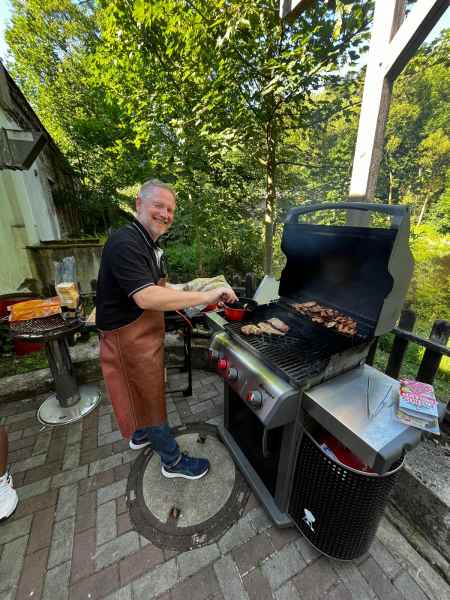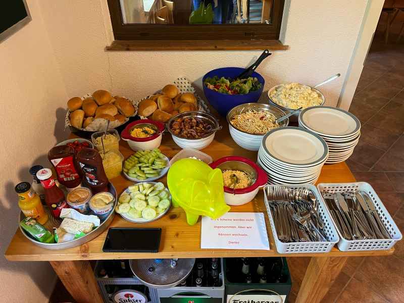 Im Anschluss wurde der Grill in Betrieb genommen und so gab es neben dem äußerst leckerem Grillgut auch reichlich Salate und Dipps, sodass jeder etwas am Büfett finden konnte und zur Freude aller auch satt wurde.