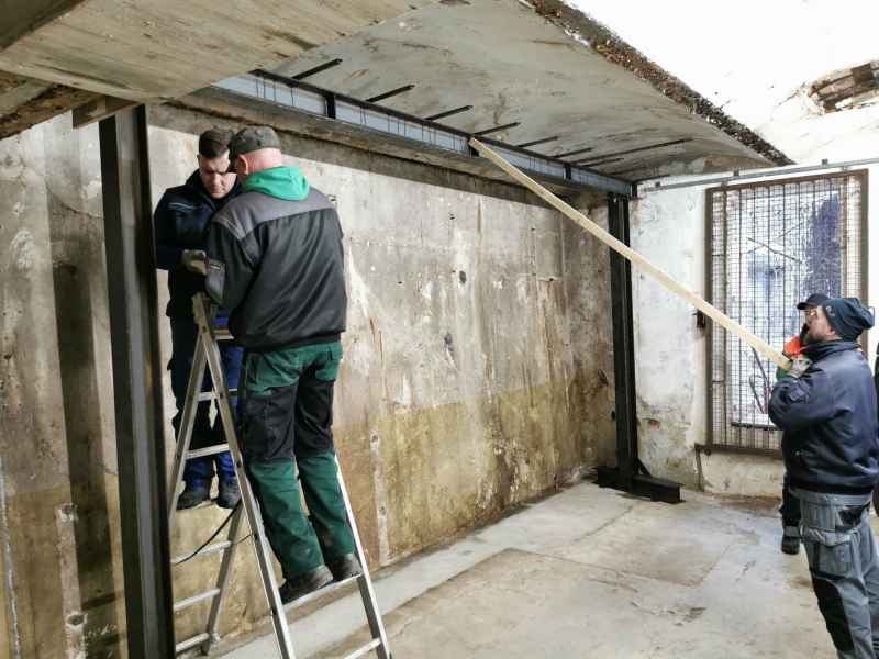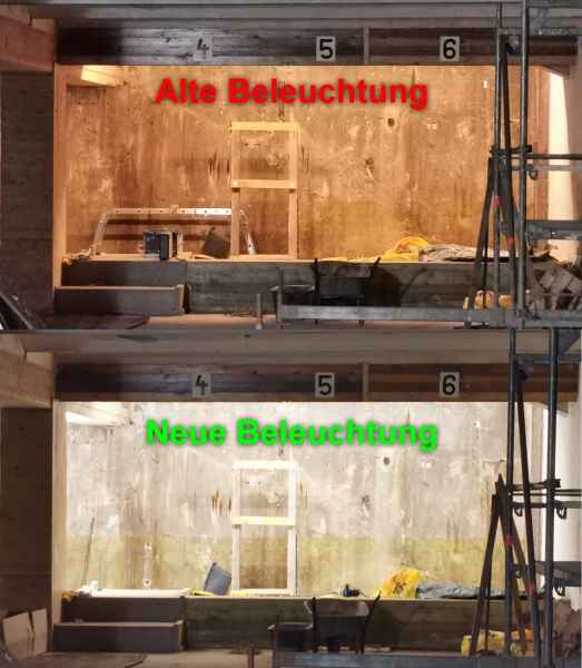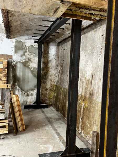 - Putzschäden an der linken Wand im Bereich der Stahlträger wurden beseitigt