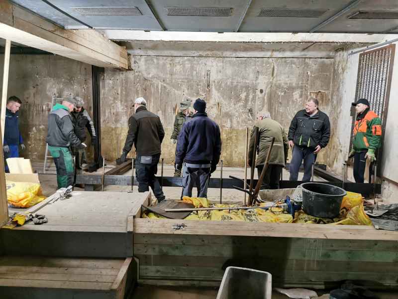 - Der unebene Fußboden am Ende des Schießstandes wurde mit Estrichbeton begradigt