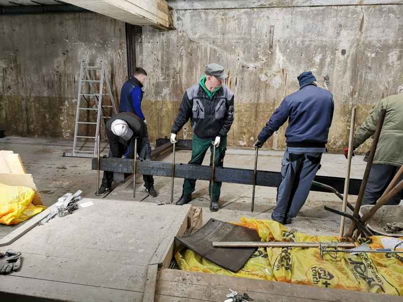 - Die Stahlträger, an welche später die Gummimatten befestigt werden, wurde von der Bauschlosserei geliefert und von uns aufgebaut