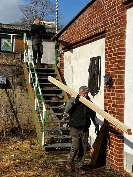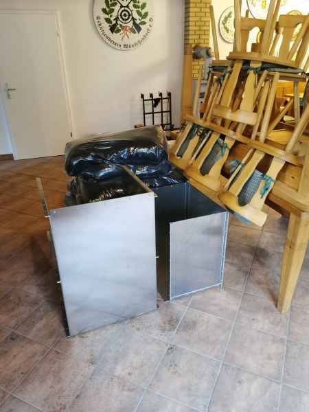 - Die Lattung für die zukünftig im Schützenstand angebrachten weißen Schallschutzplatten wurde beschafft und eingelagert