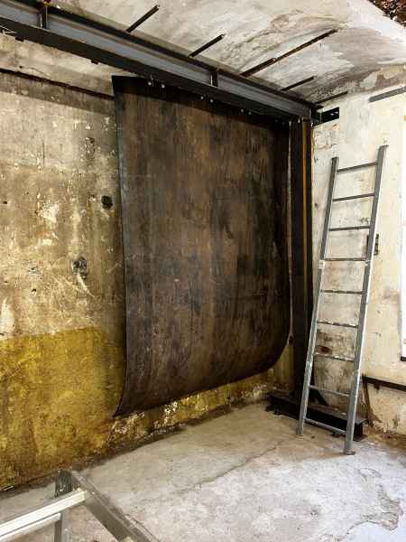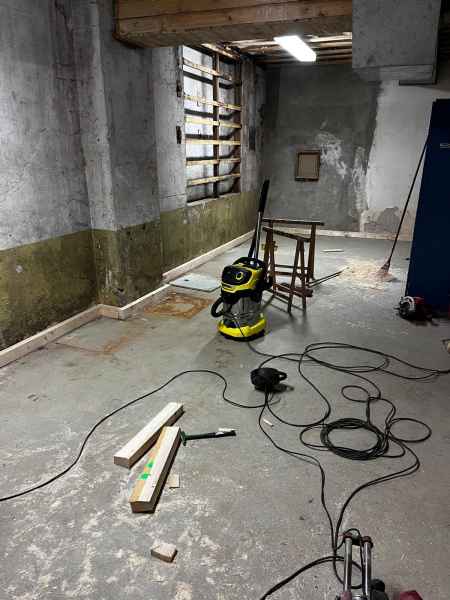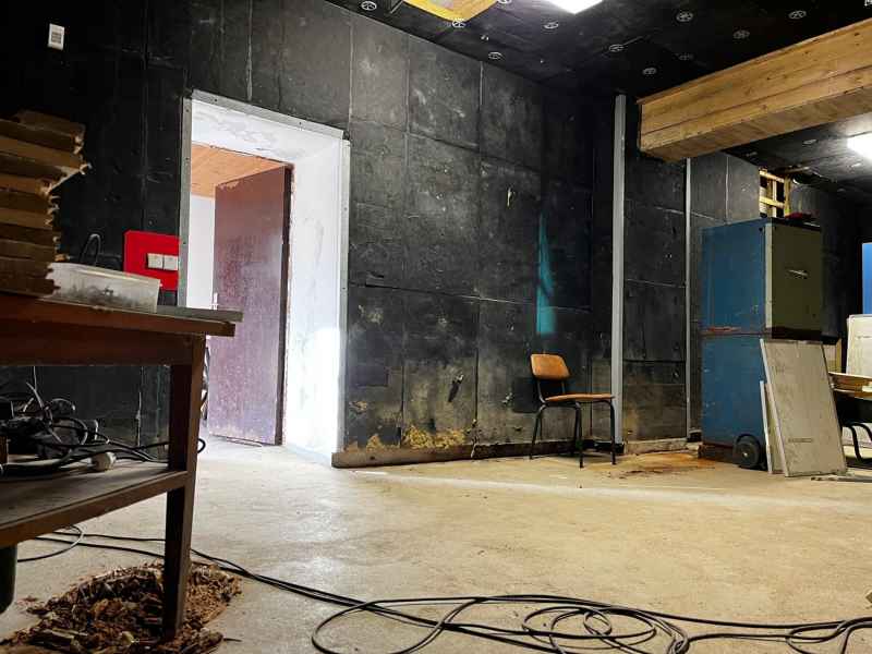 - Im Bereich des Schützenstandes wurden die alten schwarzen Brand-/Schallschutzmatten und die bereits stark beschädigte Sockelleiste entfernt