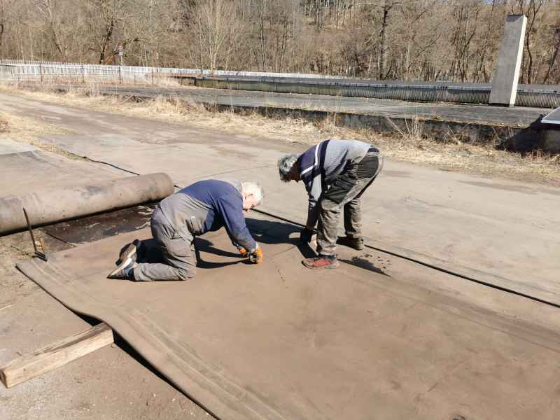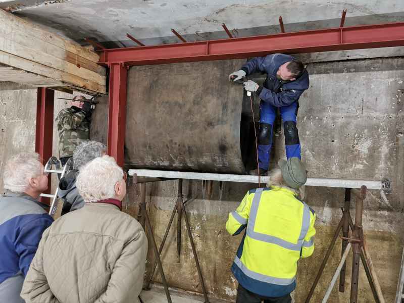 Durch das hohe Gewicht und die unhandliche Größe ist das Aufhängen der Matten sehr schwierig. Darum wird bis zum nächsten Arbeitseinsatz versucht eine Hilfskonstruktion zu bauen, welche die Arbeiten erheblich erleichtern soll. Da insgesamt 42 Matten mit einem Gesamtgewicht von ca. 3,7 Tonnen aufgehängt werden müssen, wäre eine Arbeitshilfe sehr von Vorteil.